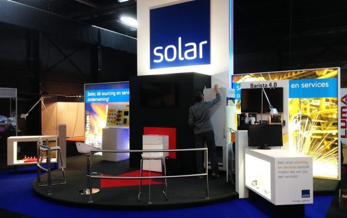 Het resultaat van de stand van Solar op de TIV 2017. Het uiterlijk van de Solar stand zoals we dat gewend zijn, maar met een leuke toevoeging; een interactieve video die men door virtual glasses